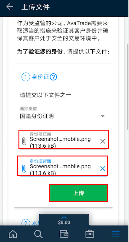 6. 找到用户身份信息验证,上传身份证正面和背面以及最近的地址证明