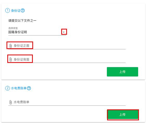 2、选择身份证明文件的类型,然后选择需上传文件,然后点击“上传”