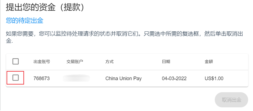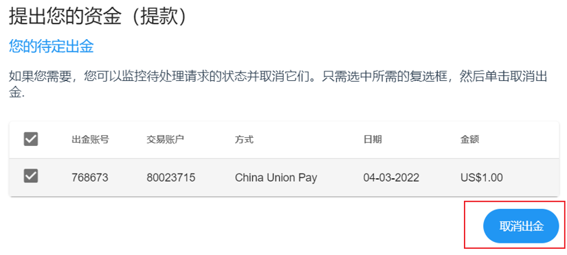 如果您在前一天提出出金请求,但仍处于待处理状态,您可以登录“我的账户”进行取消;