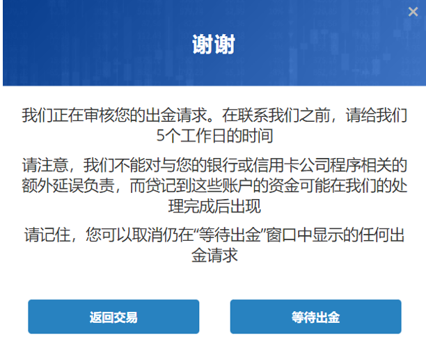 请注意:出金请求将在提出后的 24 个工作小时内处理(周六和周日为非工作日)。
