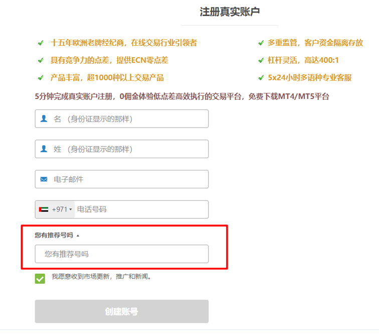 单击箭头并添加您的推荐人代码,然后继续下一步。